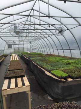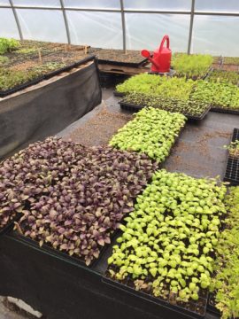 The greenhouse was like walking into a delicious dream. Table upon table filled with tiny little plants lined up in anticipation of being planted in the fields and eventually ending up in someone’s kitchen. The collection includes over thirty varieties of tomatoes, every kind of herb you can imagine, lettuces galore, beets, squash and the list goes on and on. Transplanting in the fields all depends on the weather and guesswork. Girard spoke of things like the first full moon in June being the target planting time.