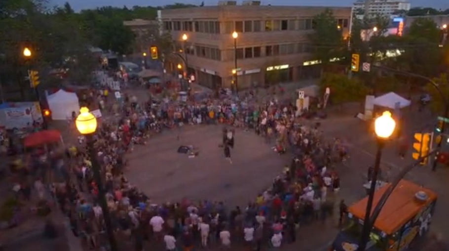 “Shot by Sica Films using time lapse photography, this is a bird’s eye view of 10th street and Broadway Ave in Saskatoon on Friday August 2, 2013, during the PotashCorp Fringe Theatre Festival.”