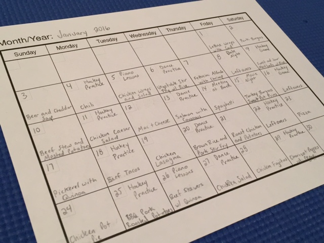 One or two nights of the week, probably towards the weekend, you may decide to have leftovers. This is a great way to save time and use up all those delicious meals you made earlier in the week. It may be helpful to put “leftover night” on a very busy day. Having dinner ready to go will make these days much calmer.
