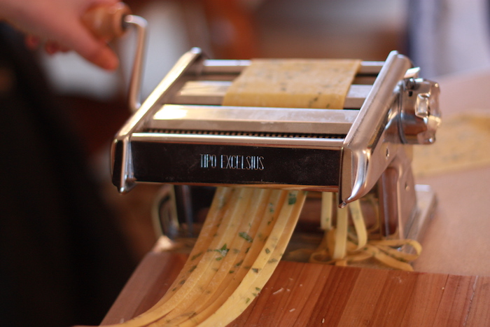Once the dough is at your preferred thickness (it’ll be a long run of dough by now), run the strip through the desired cutting attachment.