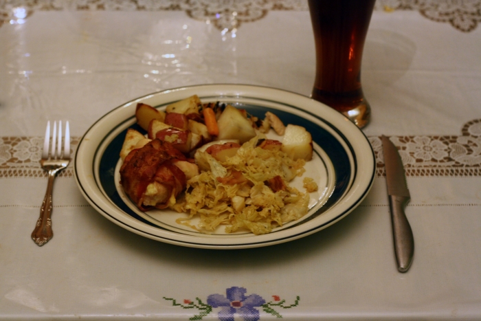 My twin four year olds didn’t like the cabbage but Stefanie liked it, and she really enjoyed the bacon chicken with the cheese stuffing and thought the beer went well with the dish. I get bonus points when I make restaurant quality meals and this one made the grade.
