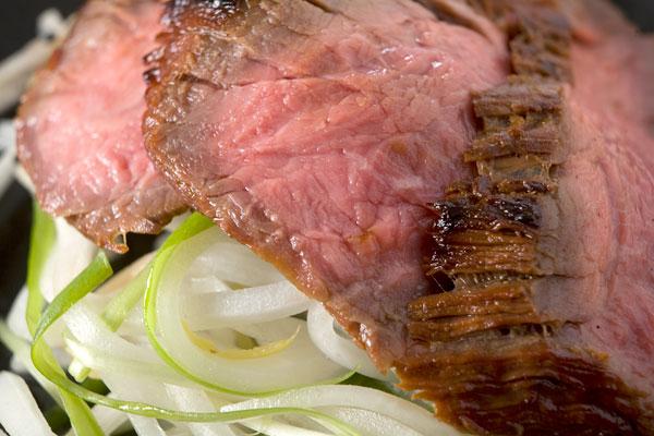 Heat a grill to medium high. Add the meat and grill until well seared, 3 to 4 minutes on each side.