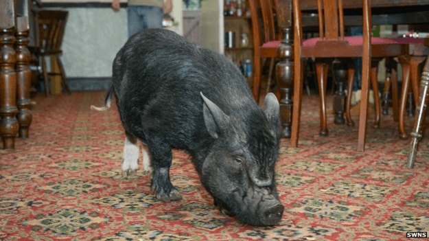 Francis Bacon is a four-year-old miniature pig that has free reign of the Conquering Hero, a South London pub. The thing is, Bacon, a pot-bellied pig, began accepting drinks from people. Beers and ciders were Bacon’s fancy. The pig’s plunge into debauchery and drunkenness became apparent after his owners regularly found him stumbling around butting into people. An intervention was needed for the “loveable menace.” The owners of the pub and Bacon have now asked patrons of the Conquering Hero to refrain from enabling the lush of a pig roaming the floor, seeking just one more sip. [Source: Death and Taxes]