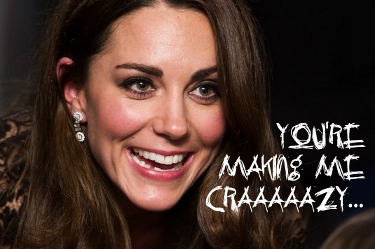 Kate can look forward to being put on “bump watch” (BARF) and countless ensuing headlines about how fat her face is and how that fetus better have a penis. First she won’t gain enough weight — KATE PUTS BABY IN DANGER; WILL LOSES MORE HAIR — but then she’ll get too fat and take too long to lose it (BATTLE OF THE BULGE, YOU GUYZ). The press will fawn over her glowing pregnancy skin and even shinier hair — that is until she gets papped pushing a pram in yoga pants. WITH GREASY HAIR. Record scratch.