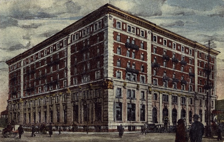 The citizenry of the young city anxiously awaited the hotel not only because of the addition of a world class hostelry, but because of the outdating and embarrassing blight that it would replace. On the site of the future hotel stood a small train station, several small hotels (most of which were built quick and dirty in the real estate boom of 1881-’82) and what the the Telegram described as “Hebrew shops”: businesses that the early waves of German and Russian Jews had opened up along Higgins.