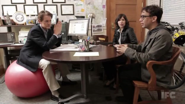 The first episode opens with Armisen’s character returning to Los Angeles from a trip to Portland, relating the nostalgic joy he’s found there to Brownstein through a musical number. This scene effectively lays out the concepts that drive the show, and ideas they keep coming back to over and over again.