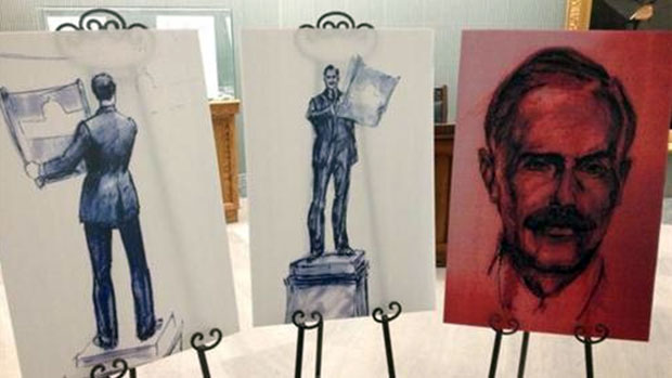 The sculpture will show Scott holding blue prints of the Legislative building, it will cost the province $90,000 and stand near the north end of the gardens. It will be erected in June 2013.