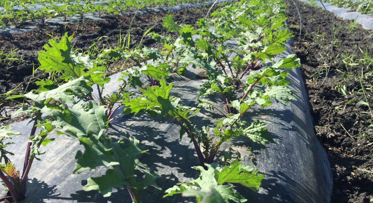 The plants are now in the ground and taking nicely to the soil, but so are the weeds. The areas in between the mulched rows are covered in weeds and ideally will not be tilled for the entire season. Tilling between the rows will cause more weeds to grow, creating a solid carpet of weeds which will create even more work. As the weeds grow, Girard uses a process called burning. He literally burns the tops of the plants with a torch which kills off the weeds. The burning can not come to close to the mulch as this will cause the sheet to melt, so weeding by hand directly along the mulch and around each plant will take much time and effort.