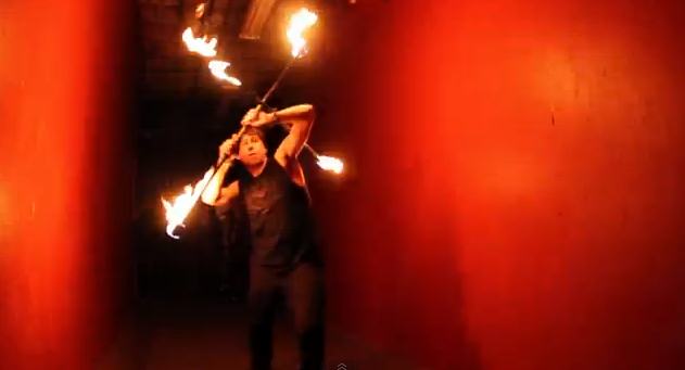 This is a new one one me. Have you seen this? This “Contact Staff” thing is, apparently, a long staff that stays in contact with the body while doing dance or gymnastics or just really gnarly body wiggles. Here is a fine example of something you will never see me do which is to perform with two flaming staffs. Seems a tad dangerous to me, but then I can’t be trusted with a fork. However, this guy who goes by the name Spades (must be a nickname) can obviously be trusted with a fork….ON FIRE!