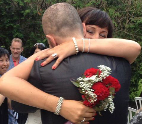 Sammy and I basically congealed our favourite romantic elements of the marriage ceremony and jettisoned those we thought weren’t representative. We kept the exchange of vows and rings. All romantic aspects were retained. We didn’t go with a priest or church simply because neither of us claim any religious affiliation, instead opting for our glorious officiate Naomi, a Unitarian who encouraged us to hand-pick the wording of her recitation. We eschewed a dj and made our own play-lists incorporating much of the music we’ve been enjoying together and with our friends for two decades. We brought our fabulous and talented cat Piper with us, taking her on regular walks around the property and watching as our friends took turns massaging the little shit. (I want that cat’s life…)