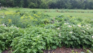 Tiny, greenish-yellow bulbs appeared in two places in the garden. And sure enough, about a month later, instead of one rhubarb plant, just where I planted it, I had two rhubarb plants growing rogue in the garden. And you will soon learn that I am all about the rogue plants, tenacious enough to survive the winter and come up in the spring; be it tender perennial herbs that have no business coming back, lettuce and tomatoes that have self-seeded the previous fall or rhubarb plants that get tilled into the ground and redistributed by some well-meaning farmer.