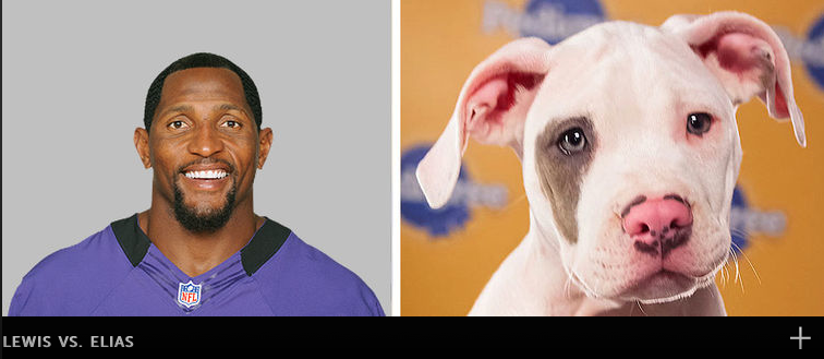 But how would a bunch of terrifyingly huge men stack up against a pack of adorably small puppies? Fast Company has decided to answer that burning question with some side-by-side comparisons of players and puppies. You’ll get the lowdown on match ups like Ray Rice vs. Cash the pit bull, Torrey Smith vs. Simba the Japanese chin, and Colin Kaepernick vs. Harry the smooth chocolate dachshund (go team Harry, Kaepernick’s a flash in the pan, go Pack, suck it 49ers!).