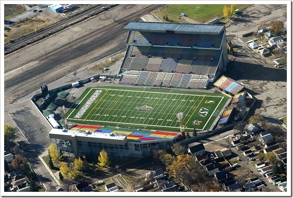 (As an interesting factotum, the new stadium for the Riders is expected to be situated in an east-west position. Currently it is situated north-south. In Hamilton they are about to demolished three-quarters of the stadium and pivot it so that it runs north-south. This means the new Regina stadium will be the only one in the CFL to run east-west position-wise. I wonder how that will affect the kicking game considering the wind is always a factor here?)