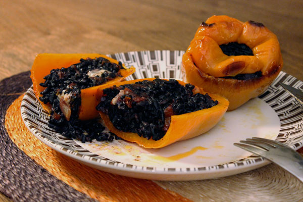 - 1 cup rice (I used fancy black rice from the farmers market)