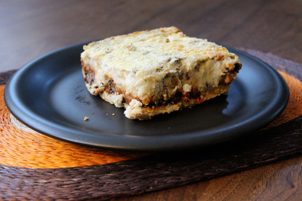 - Remove, and now — very important! — let cool a few minutes before cutting in. As tempting as it is to chop it up right away, it needs a few minutes to help settle, or it will all fall apart when you cut in!