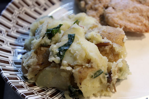- Add sauteed ramps, along with leafy greens (the heat from the potatoes will wilt them a bit).