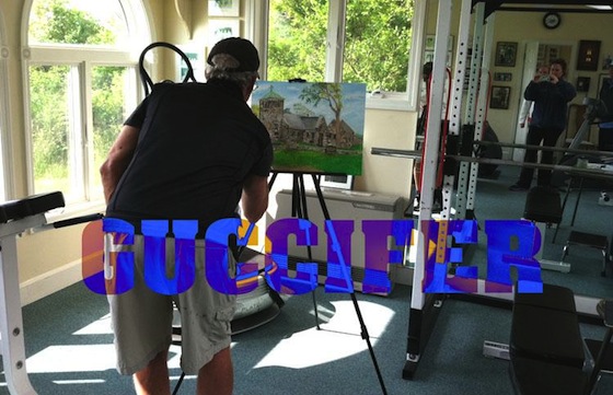 But, before the ex-Pres gets typecast, there is also a picture of him painting a church scene in what looks to be his home gym/solarium (see top image).