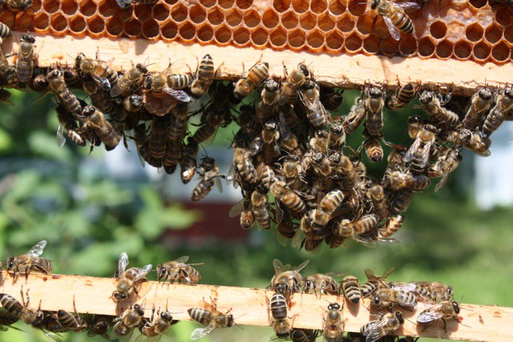 The worker deposits the nectar mixed with a stomach enzyme into a cell located on a hanging frame inside the hive, and communicates through its pheromones that the queen is good, healthy, and the hive is in harmony.