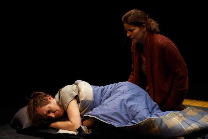 She doesn’t offer much more to concerned-mother-turned-caregiver Sharon (Nancy Sorel), who spends the play bashing her good intentions against the twin walls of unyielding law and her son’s irrational illness. Sorel’s presentational, unfelt delivery can’t find much nuance or traction in an underwritten, repetitive part and what you would think should be the linchpin relationship of the show doesn’t grab full emotional life.