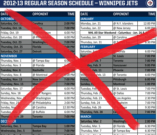 With the honeymoon blush behind them, but the fresh new-hockey-team scent still wafting off the ice, the Winnipeg Jets entered the 2012-13 season a little older, a little sturdier — thanks to the additions of free agent veterans Olli Jokinen and Alexei Ponikarovsky — and mostly ready to rock. Now, with the second half of the Jets’ non-existent sophomore season still ahead, Melissa Martin and Mykael Sopher reflect on the Top 10 games that never actually took place.