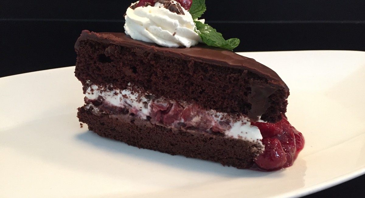 Called Schwarzwälder Kirschtorte in German, which means Black Forest Cake, this deliciously rich gateau has many layers. It consists of chocolate cake layers soaked in Kirsch, a clear double-distilled alcohol made from cherries, whipped cream, Morello cherries and chocolate curls. It is said to be named after the Black Forest area in southwest Germany. The forests were thick and dark from all the fir and pine trees. The women in this area wore traditional costumes of black dresses, puffy white blouses, and red hats with large red pom-poms. Some historians believe the cake was modeled after these costumes.